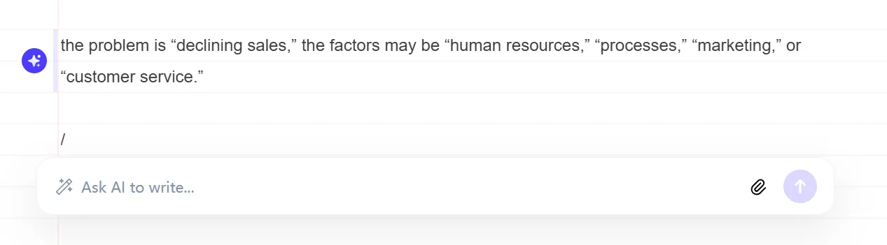 將描述問題和原因的文本直接復(fù)制粘貼到編輯頁面,AI會(huì)解析問題和因素的結(jié)構(gòu)并進(jìn)行可視化。