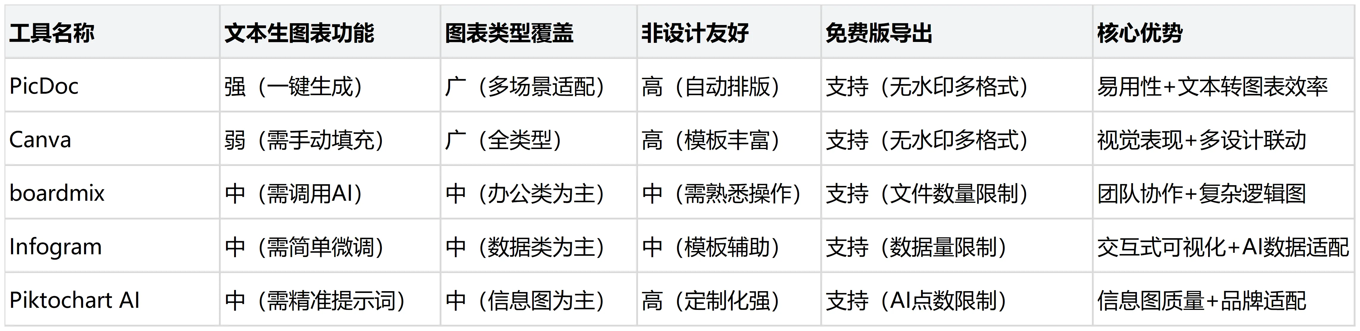 AI圖表工具詳細(xì)對比分析