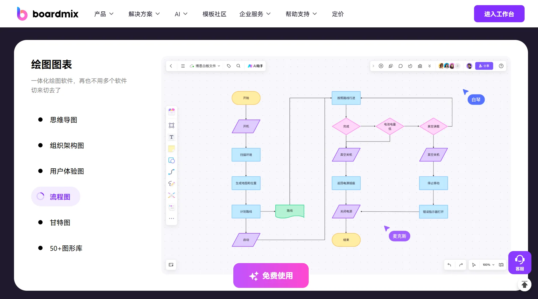 • boardmix:主打協(xié)作功能的云端白板工具,AI輔助生成多類型辦公圖表。