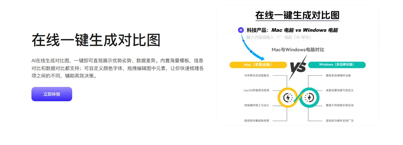 1. 內(nèi)容理解:精準(zhǔn)識別文本中的 “對比對象”和 “對比維度 / 數(shù)值”,自動建立對比框架,不會出現(xiàn) “對象與維度錯(cuò)位” 的問題;