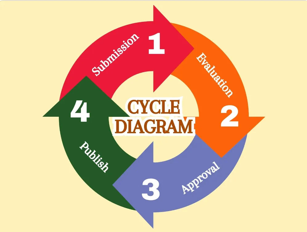 循環(huán)圖是重復(fù)過程的可視化表示。其中階段或步驟以閉環(huán)形式連接(如圓形或螺旋形),通過形狀、文本和箭頭展示每個(gè)過程環(huán)節(jié)如何銜接至下一環(huán)節(jié),最終形成閉環(huán),從而直觀呈現(xiàn)連續(xù)性。典型示例包括水循環(huán)或“產(chǎn)品設(shè)計(jì)-測(cè)試-改進(jìn)”循環(huán)。它是解釋循環(huán)邏輯的核心工具,與在線性圖中流程在最終步驟結(jié)束不同。