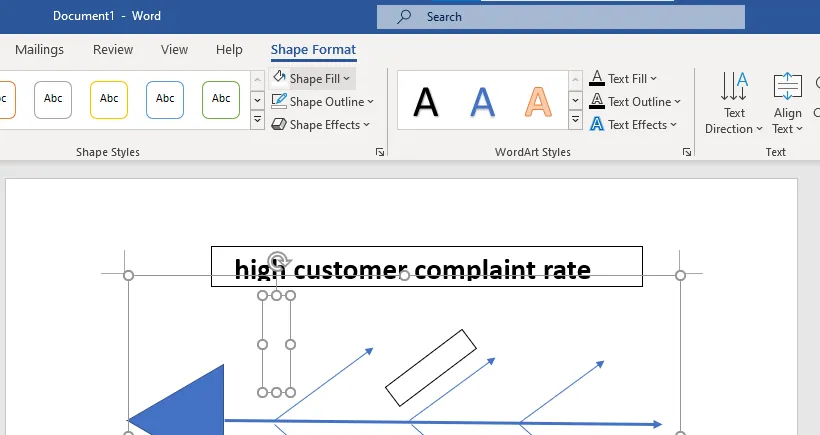 1.點擊插入→文本框,選擇水平文本框,在魚頭部分繪制文本框并輸入核心問題(如“高客戶投訴率”)。