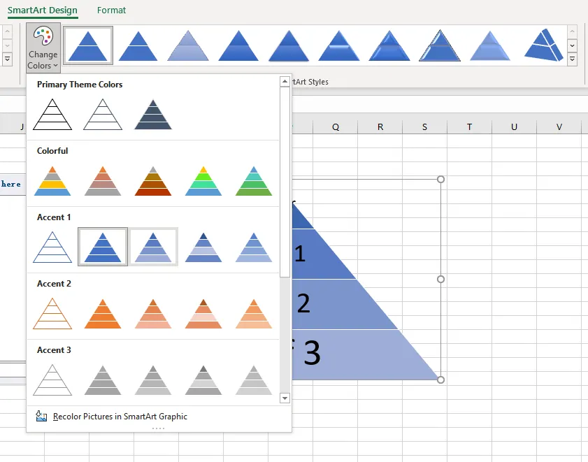 調(diào)整樣式:右鍵點(diǎn)擊圖表 → “更改顏色”以選擇漸變顏色系統(tǒng)(以增強(qiáng)層次感);