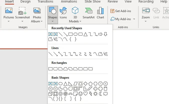• 插入基本形狀:打開PPT,點(diǎn)擊頂部菜單欄的“插入”→“形狀”,選擇“梯形”(或三角形;梯形更易調(diào)整層級差異)。