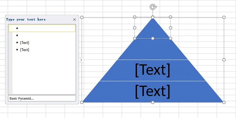 替換內(nèi)容:點(diǎn)擊生成的金字塔圖表,左側(cè)將彈出文本窗格。按級別輸入內(nèi)容(按 Enter 鍵換行至下一級,按 Tab 鍵縮進(jìn)至下一級,按 Shift+Tab 鍵返回上一級)。