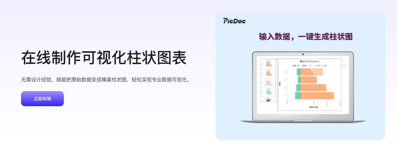 不需要。像 PicDoc 這類 AI 工具會自動完成配色、排版、數(shù)據(jù)標簽添加,你只需輸入數(shù)據(jù),1-3 秒就能生成專業(yè)柱狀圖,無需懂設計原理或工具操作。
