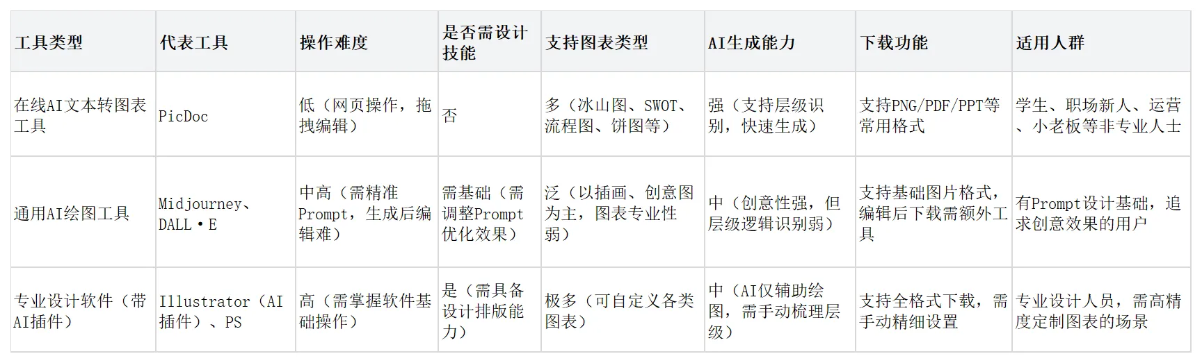 解決方法:新手優(yōu)先選擇PicDoc之類(lèi)專(zhuān)注于“文本轉(zhuǎn)圖表”的工具。