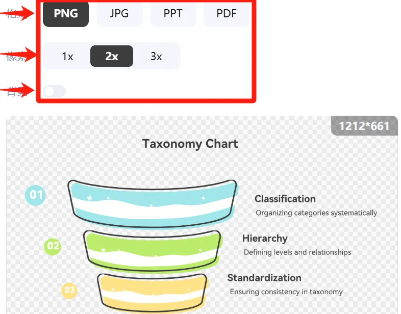 完成編輯后,您可以選擇所需格式并導(dǎo)出分類圖。