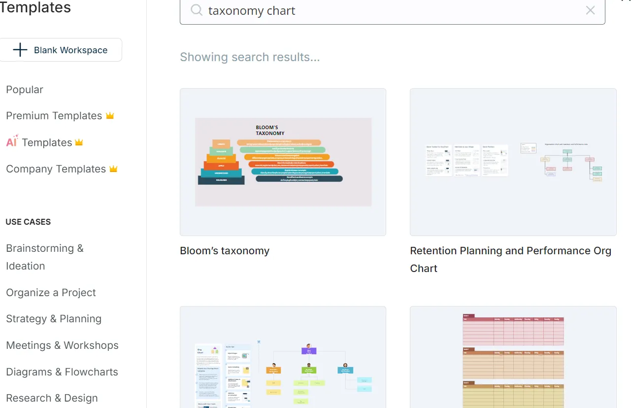 注冊后,您需要搜索并選擇所需的圖表類型,獲取分類圖的初始模板。若不方便,可使用演示賬戶。