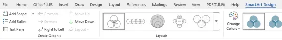 您可通過(guò)右上角的“SmartArt設(shè)計(jì)”和“格式”選項(xiàng)更改圖表顏色和樣式。
