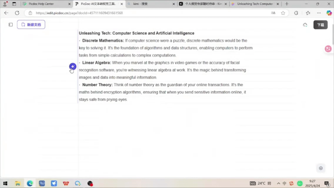 輸入與主題相關(guān)的關(guān)鍵詞,PicDoc 內(nèi)置的 AI 將自動(dòng)生成內(nèi)容,激發(fā)創(chuàng)意,簡(jiǎn)化頭腦風(fēng)暴。