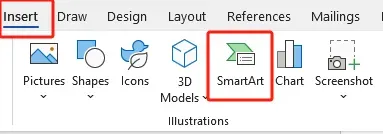 在Word中,點(diǎn)擊“插入”并選擇“SmartArt”選項(xiàng)。