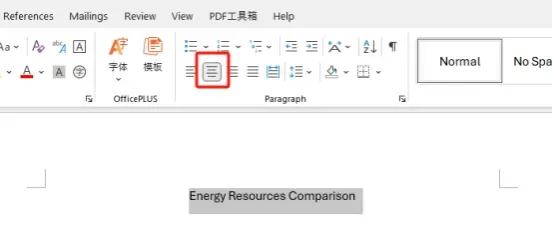 為您的維恩圖添加一個(gè)合適的標(biāo)題,選中整個(gè)標(biāo)題,然后點(diǎn)擊段落欄中紅色框所示的按鈕將其居中。